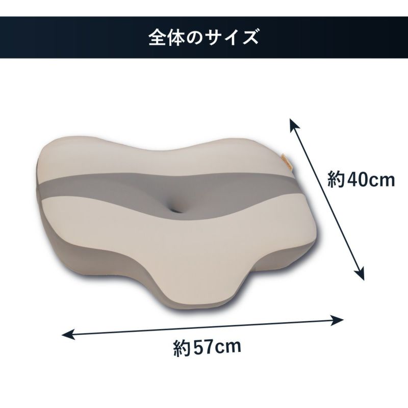 枕の中央が低く肩口まで伸びた特殊形状で後頭部・首・肩を支える