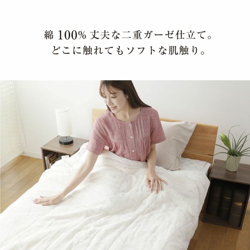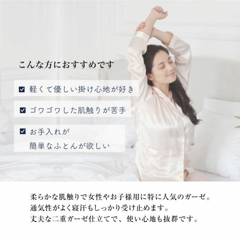 ソフトな肌触りの二重ガーゼが空気をたっぷり含んでふっくら感をひき立てる、柔らかい掛け心地の肌ふとん。