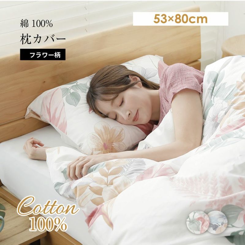 綿100% 枕カバー フラワー柄