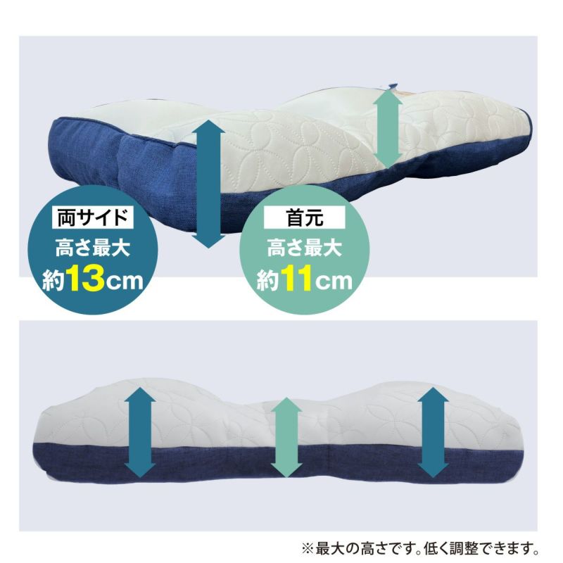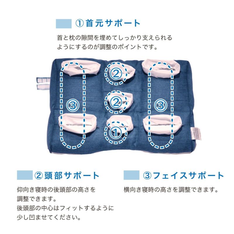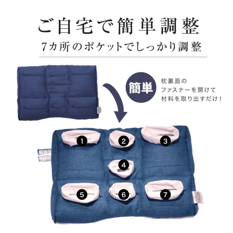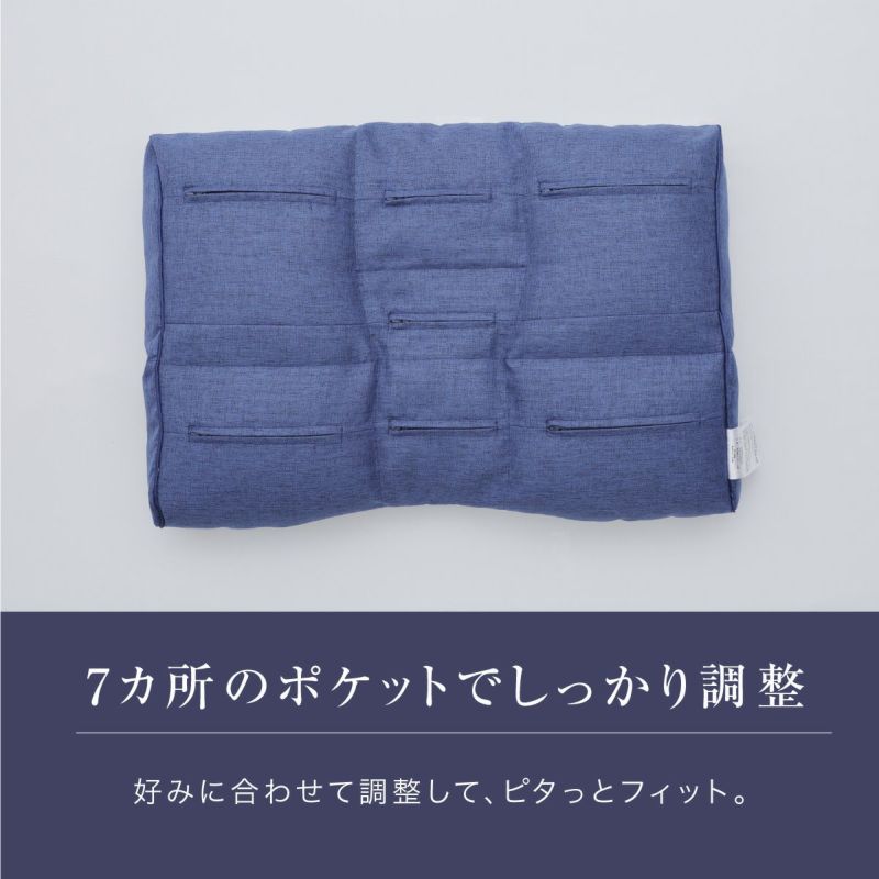 頭のサイズ・重さ・首の長さ・肩の厚み…一人ひとり異なります。裏面の調整ポケットから中材のパイプ量を好みに合わせて簡単調整。自分で簡単に調整できるから、調整して、寝てみて、また調整して・納得いくまで寝心地を追求できます。