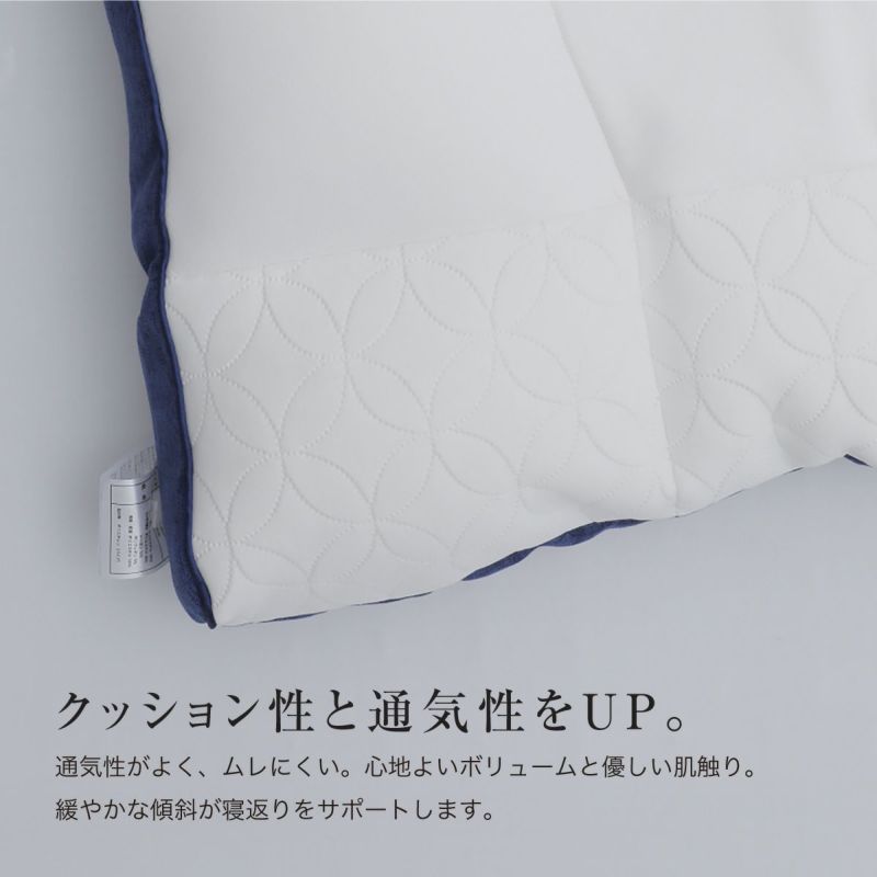 中央の首元にカーブをつくることで 頭部から首元のラインにピタッとフィットし やさしく支えてくれます。