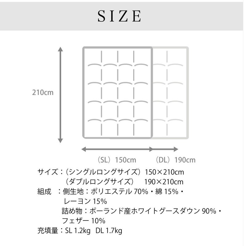 詰め物:ポーランド産ホワイトグースダウン90%・フェザー10%