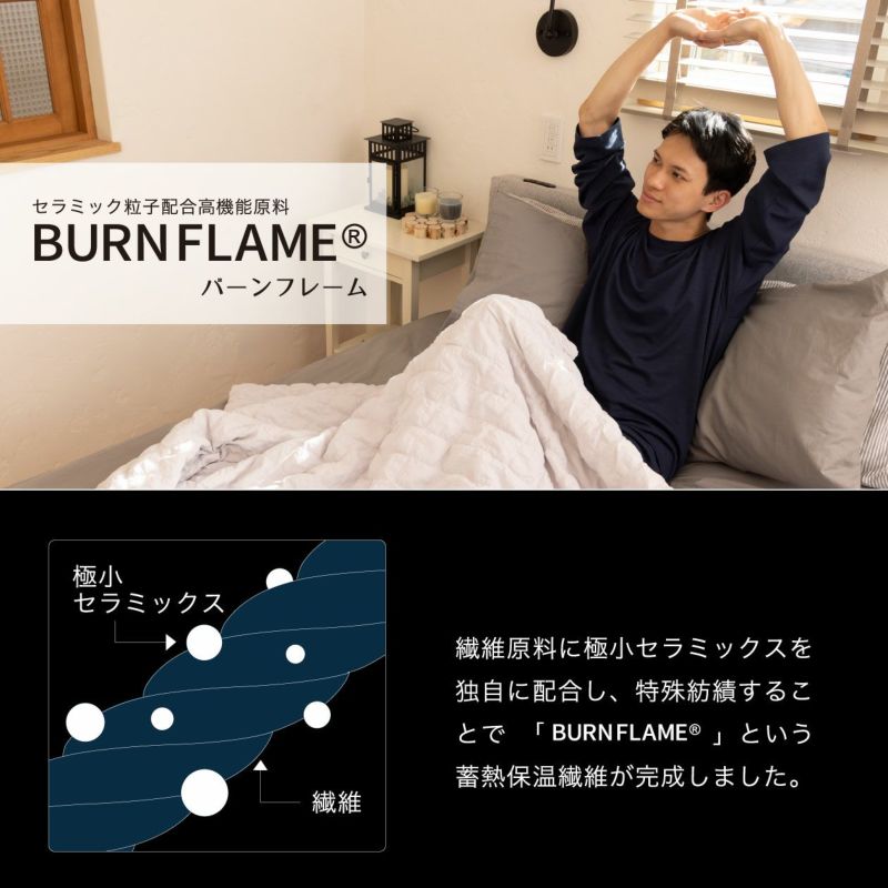 普段の生活をより快適に。遠赤外線の血行促進作用。自らの体温による遠赤外線を輻射させる特殊繊維「BURN FLAME®︎」を使用。血行が促進されることで、疲労回復が期待できます。