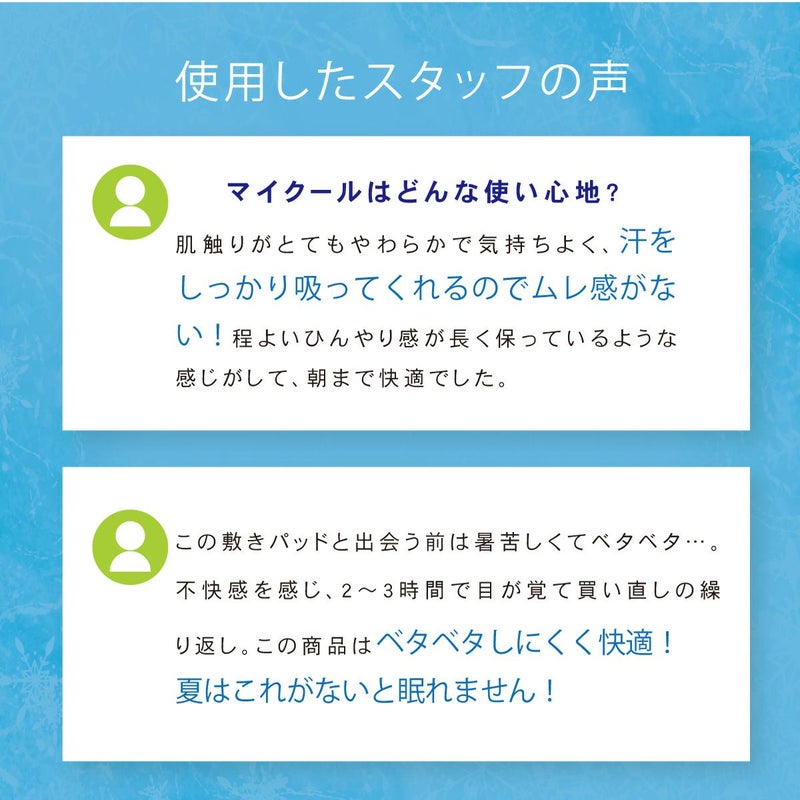 肌触りがとても心地よく、快適に過ごせます。 ひんやり、というよりは、適度な温度を保ってくれる心地よさです。購入してよかったと思いました。