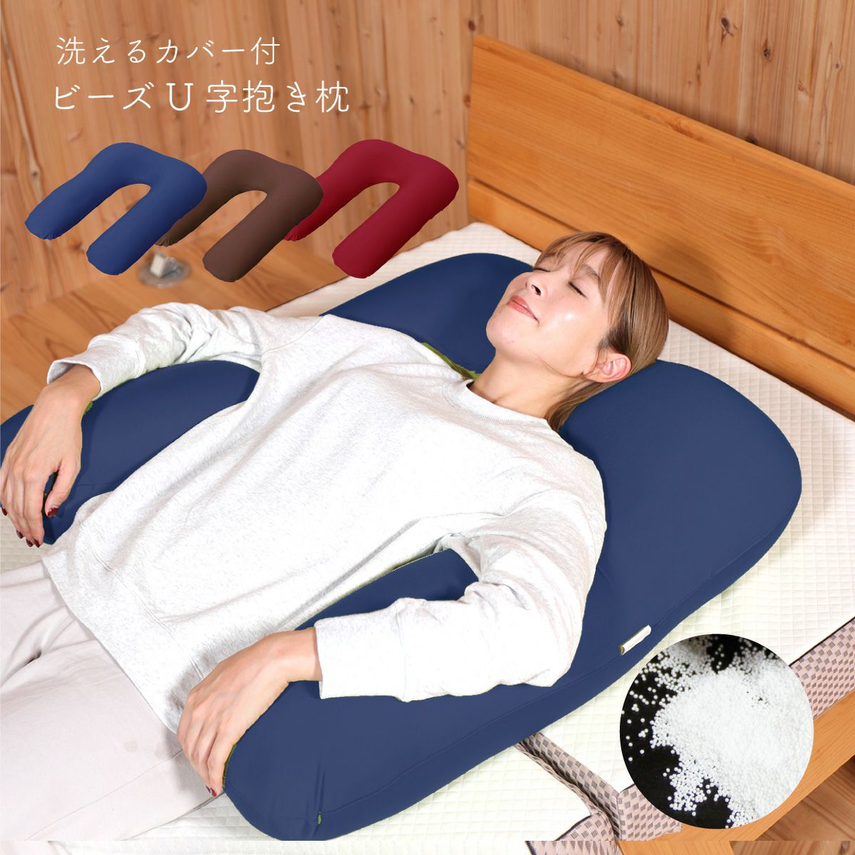 ビーズ抱き枕U字(カバー付) |