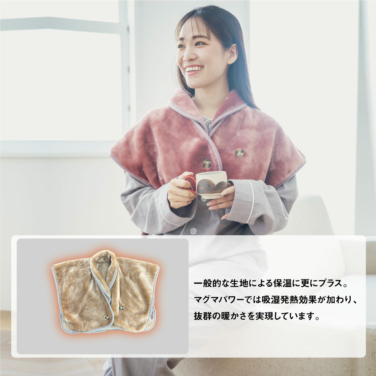取り扱い上のご注意 ・家庭洗濯の際は、タンブル乾燥時の摩擦により毛羽立ちや ピリングが生じることがありますので回転式乾燥機のご使用をお避けください。 ・ご使用中及びお洗濯中の摩耗により毛羽が抜ける事があります。 ・毛羽部分が絡み合った時は軽くブラッシングをしてください。 ピリング(毛玉)が出来た時は、ピリングカッター(毛玉取り機)でお手入れしてください。 繊維に火山灰を使用し、 特許を取得したマグマパワーシリーズ は特許を取得しています。 シリーズ史上NO.1の保温力!電気なしで暖かさが持続します。