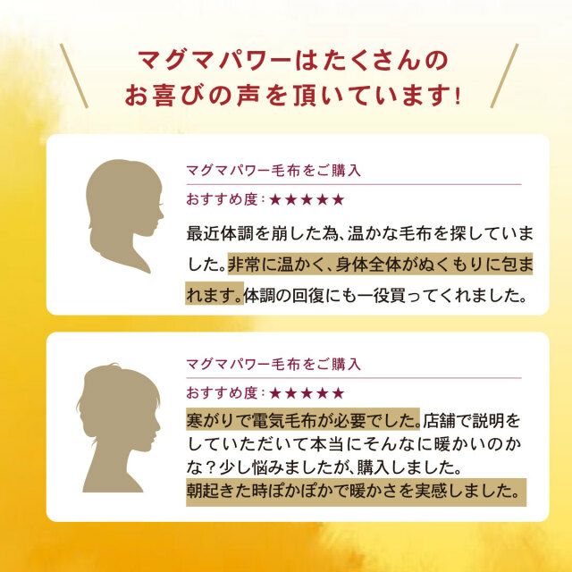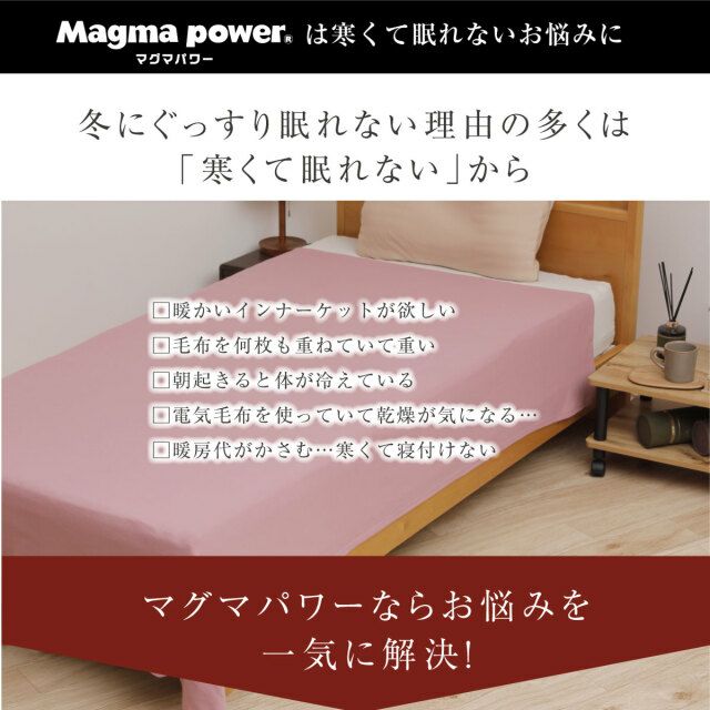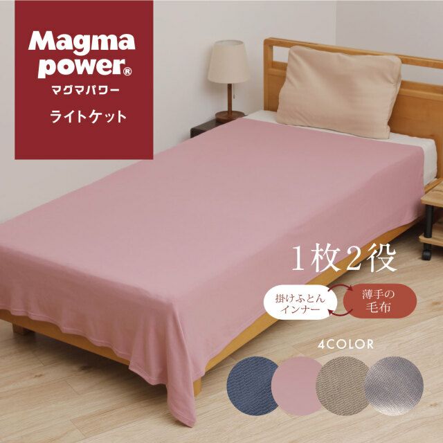 一般的な毛布は保温性に優れていますが、マグマパワーは吸湿発熱効果と保温性を高めた新素材で、抜群の暖かさを実現しています。