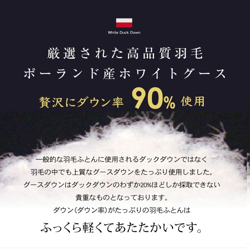 詰め物:ポーランド産ホワイトグースダウン90%・フェザー10%