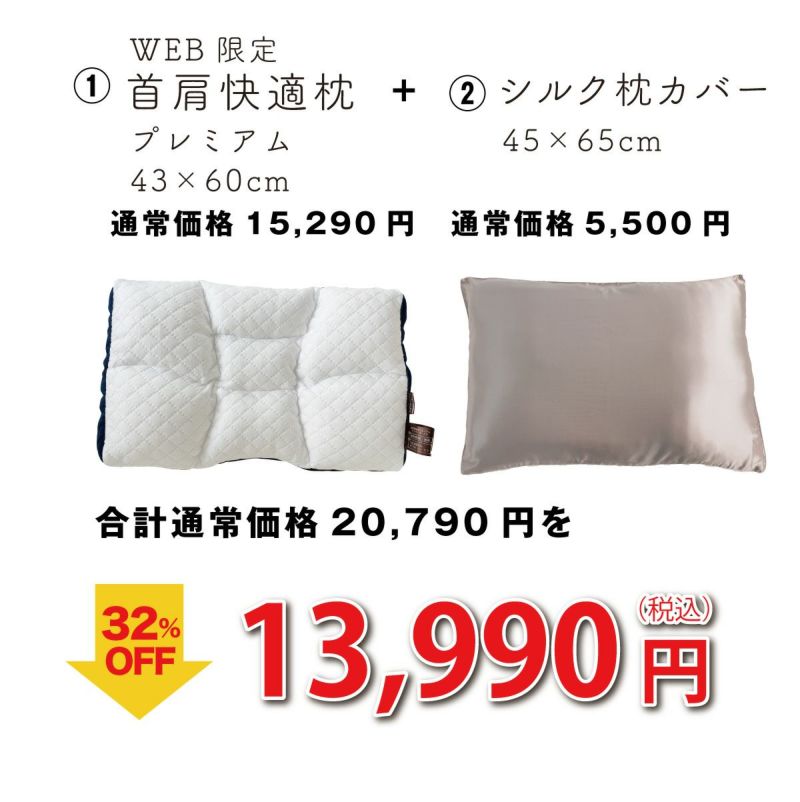 【WEB限定】首肩快適枕プレミアム×シルクまくらカバー 新生活セット