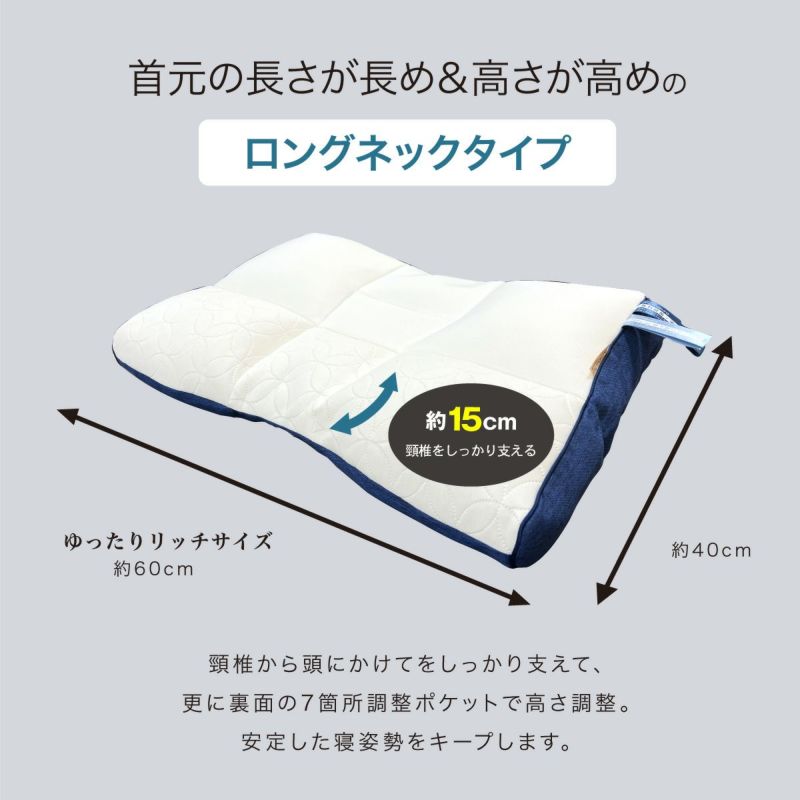 頭のサイズ・重さ・首の長さ・肩の厚み…一人ひとり異なります。裏面の調整ポケットから中材のパイプ量を好みに合わせて簡単調整。自分で簡単に調整できるから、調整して、寝てみて、また調整して・納得いくまで寝心地を追求できます。