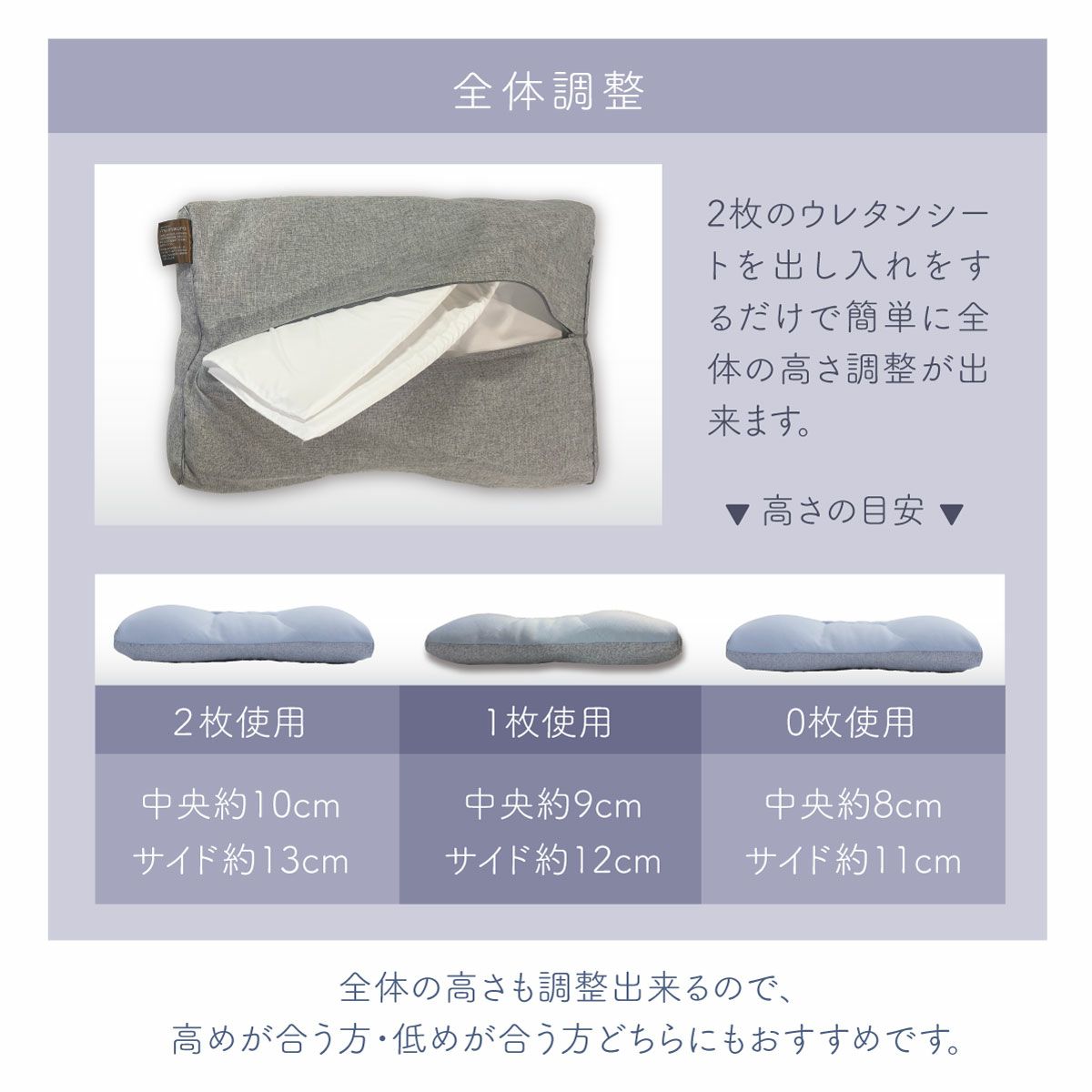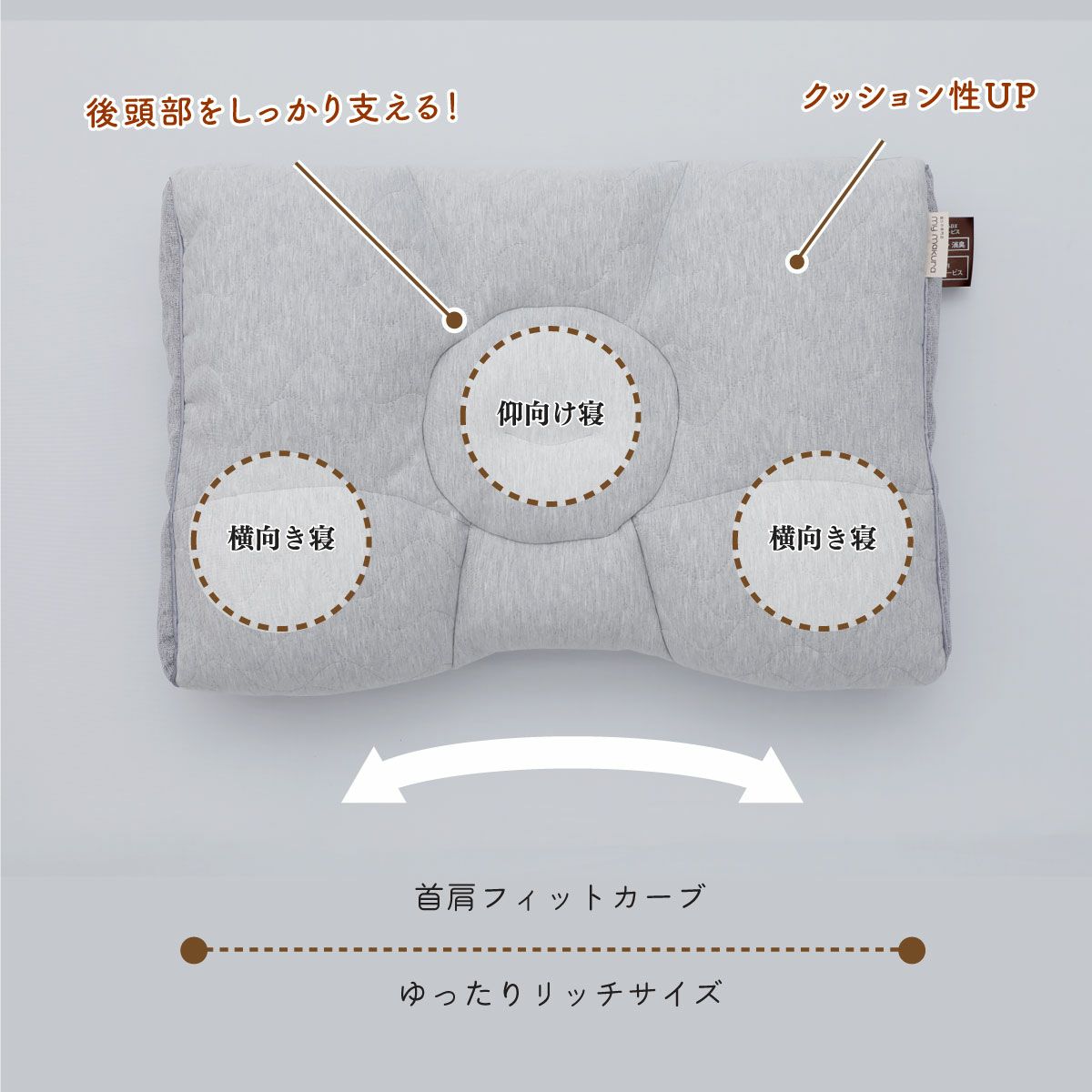 | 対応枕カバー | (R)43x63cm、45x65cm (W)53x80cm |
