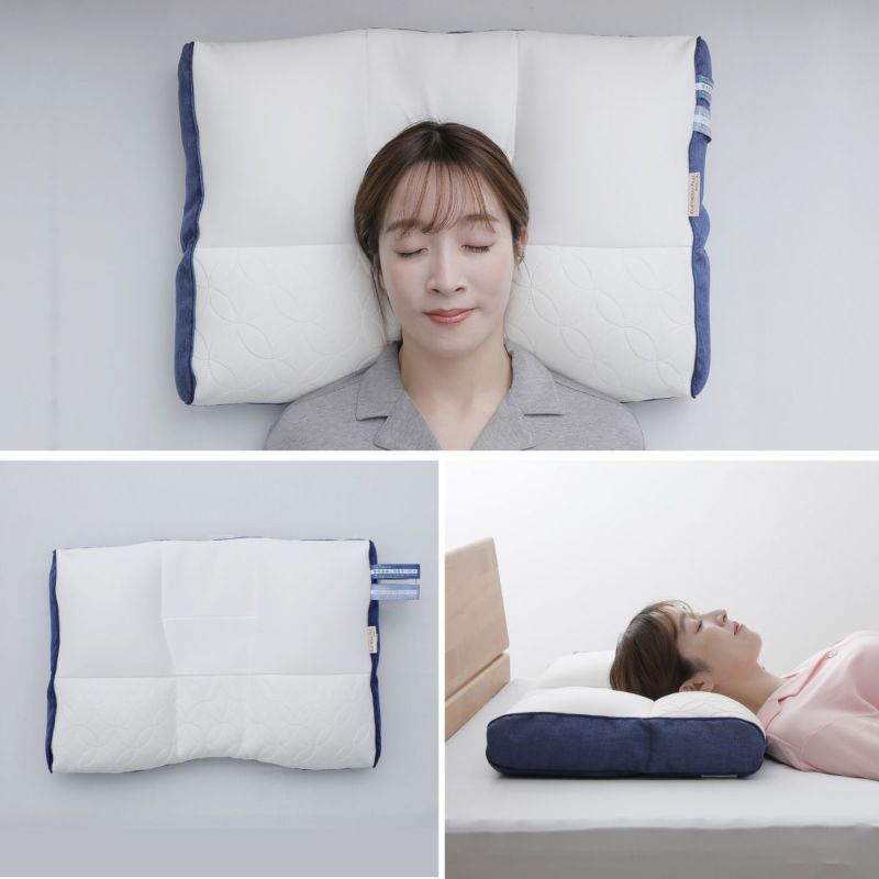 中央の首元にカーブをつくることで 頭部から首元のラインにピタッとフィットし やさしく支えてくれます。