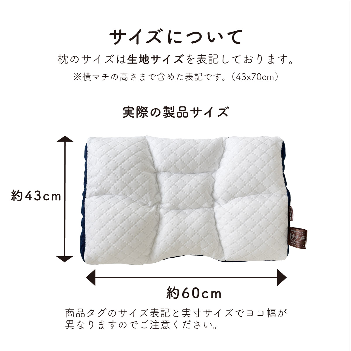 生地サイズ(43x70cm) *実寸は43×60cm ※枕カバーはワイドサイズ(43×70cm)をご利用下さい。