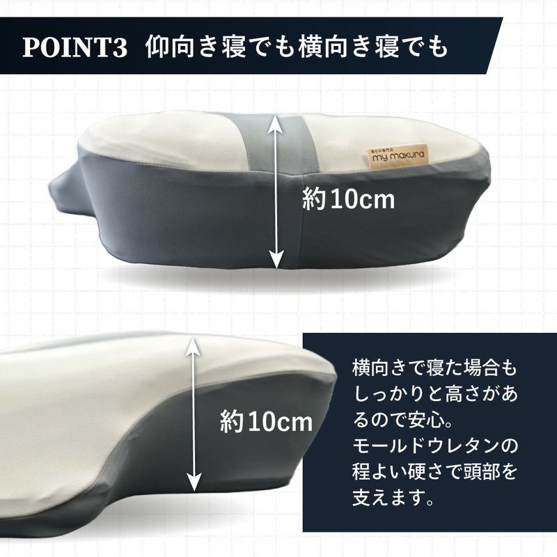 中材にモールドウレタンを使用することで、頭・首・肩をしっかり支えつつ、安定したフィット感を実現