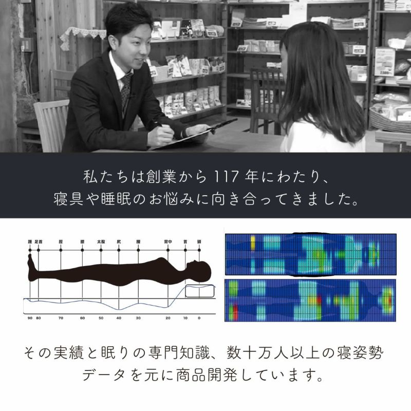 その実績と眠りの専門知識、数十万人以上の寝姿勢データを元に商品開発しています。
