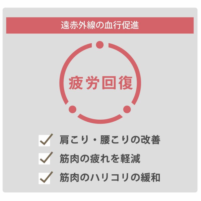 身体から放出された遠赤外線を独自の技術で原料に配合した極小セラミックスが吸収し熱に変換、 衣服内を穏やかで心地よさをキープし、疲労を緩和する環境を整えます。