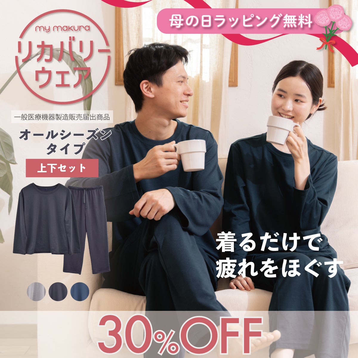【2点以上ご購入で更に10%OFF】リカバリーウェア2026 オールシーズンタイプ ユニセックスモデル(男女兼用) 上下セット