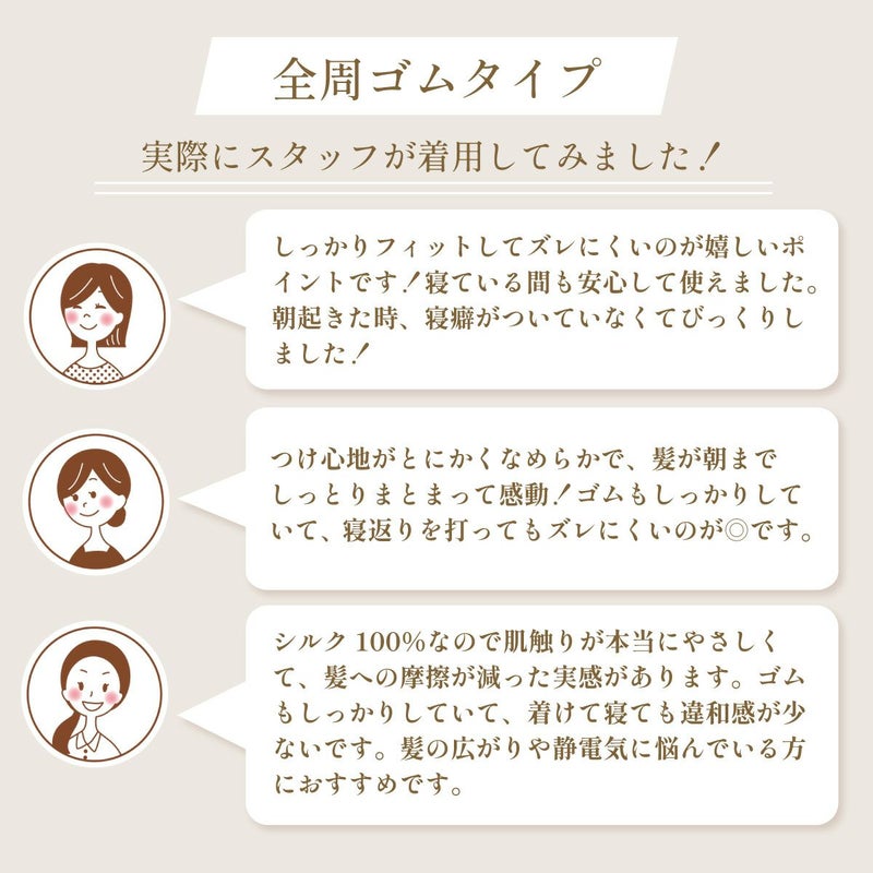 シルクナイトキャップ 筒型 全周ゴム