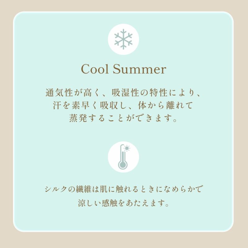 シルクの繊維は体温を調節する特性があり、外気の温度に応じて体温を保つことができます。