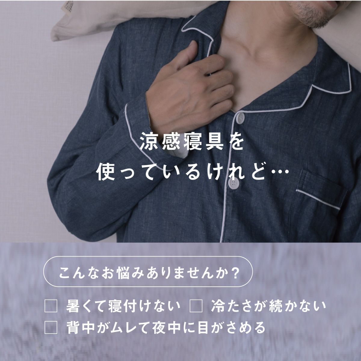 ひんやり心地いい温度へ調整し、夏の寝苦しさを解消。 天然素材にこだわった涼感寝具のシリーズです。