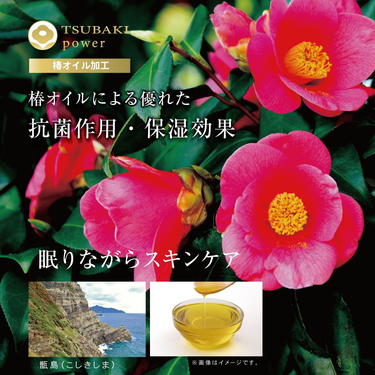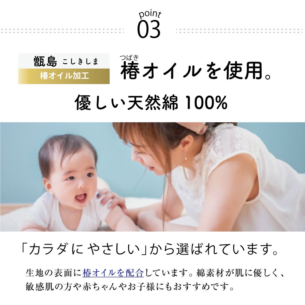 鹿児島 甑島(こしきしま)の椿からオイルを抽出。 肌に優しく、天然素材にこだわった綿100%のシリーズ。