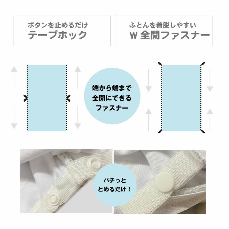 ふとんカバーがホックでしっかりと留まっているので、ふとんを体に掛ける時に引っ張っても中のふとんがズレにくい。