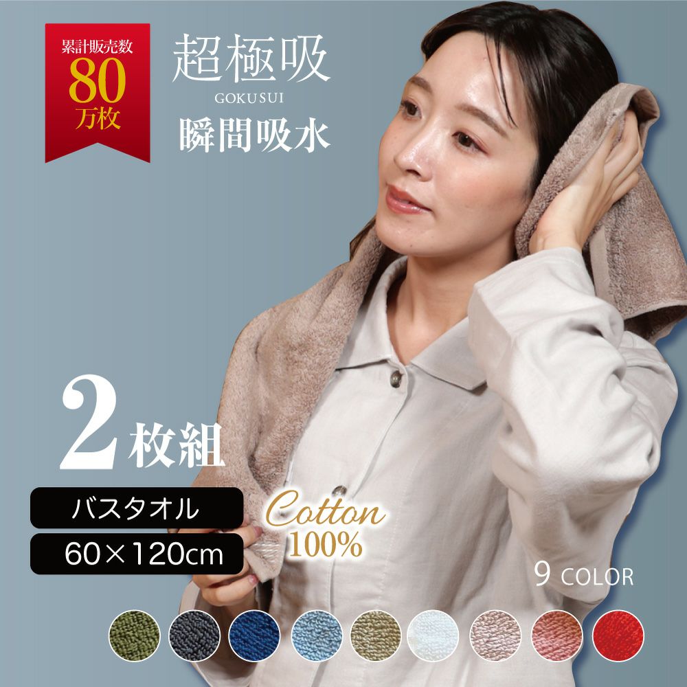 超極吸バスタオル2枚セット(60×120cm)