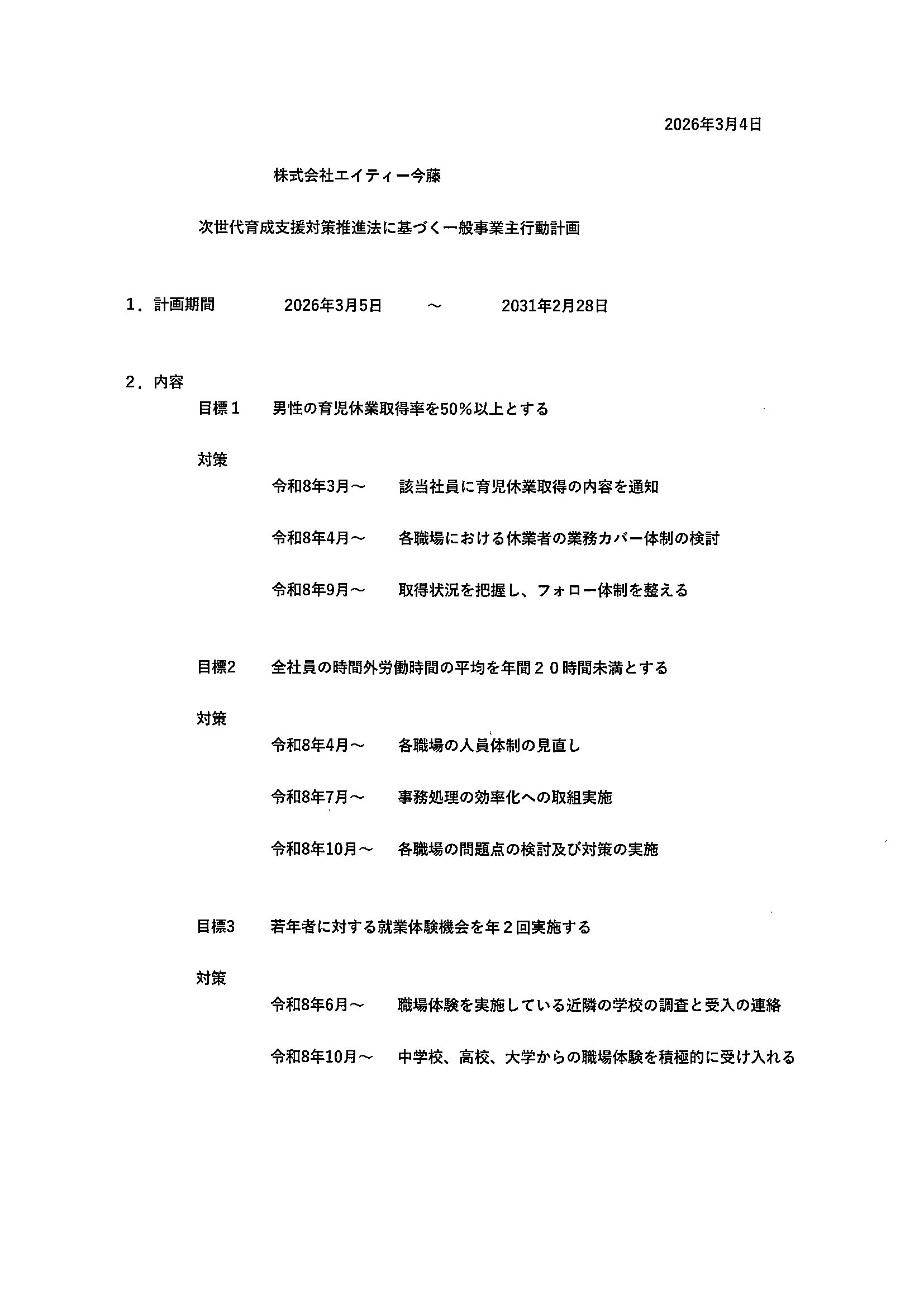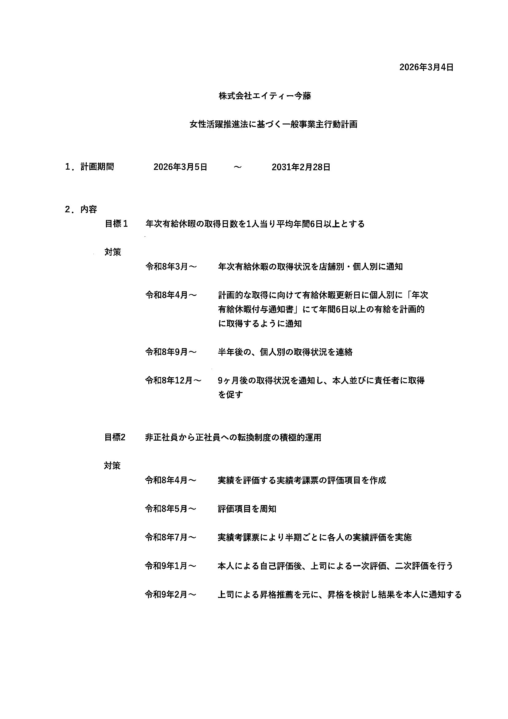 弊社では女性が活躍でき、男女ともに長く勤められる職場環境を作るための取り組みを行なっております。 詳しくはこちらからご確認ください。