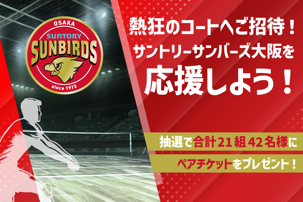 | 2026年1月25日(日) 17:00 | 東レアローズ静岡 | おおきにアリーナ舞洲 | 1組2名様 | 1月10日(土) ※終了いたしました |