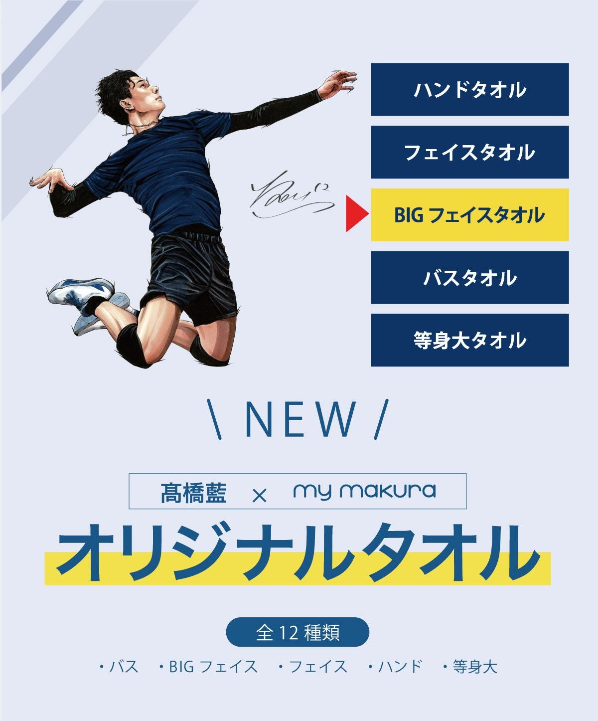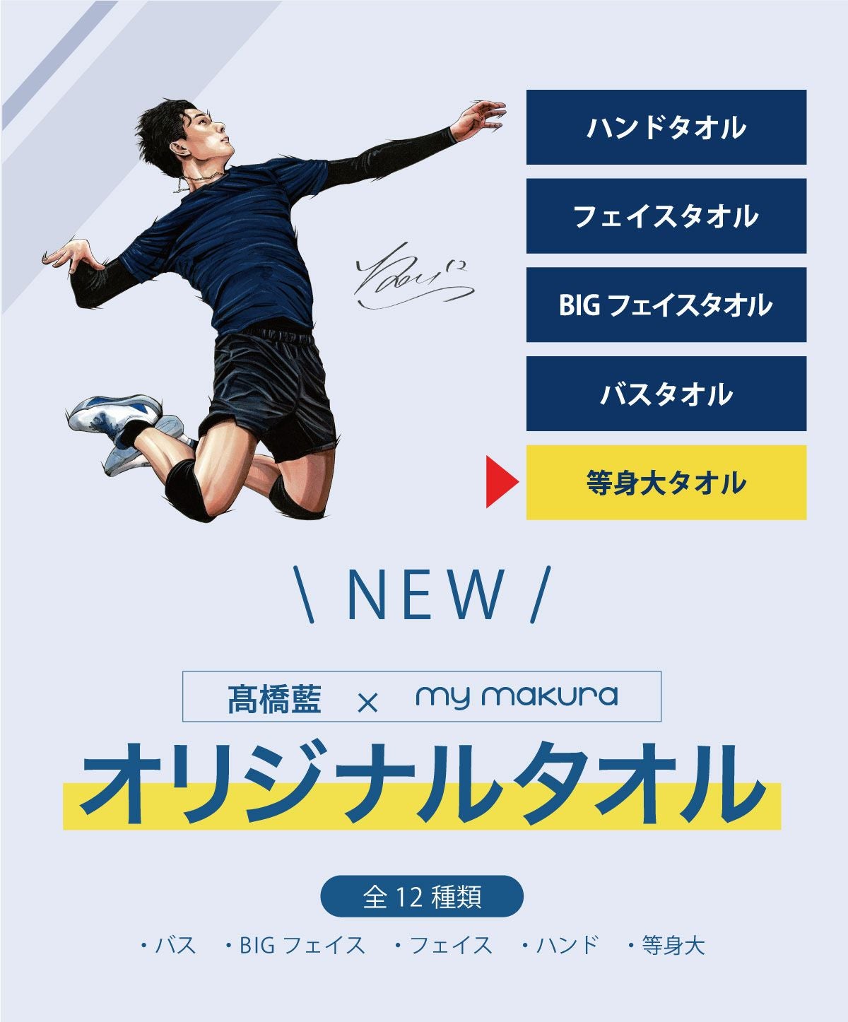 他の画像を見る 髙橋藍選手オリジナルBIGフェイスタオル(40×110cm)Ran Takahashi Big Face Towel ¥ 4,400 税込 カートに入れる お気に入りに登録する 5.00 (2)